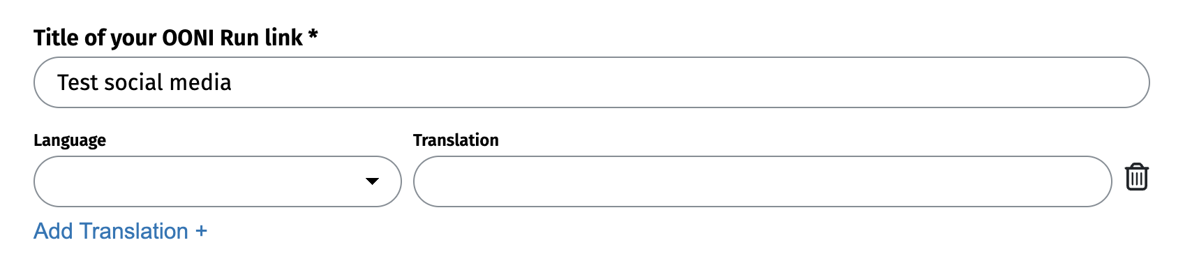 Step 5. Add a title for your OONI Run link. Optionally, you can add translations for your title.