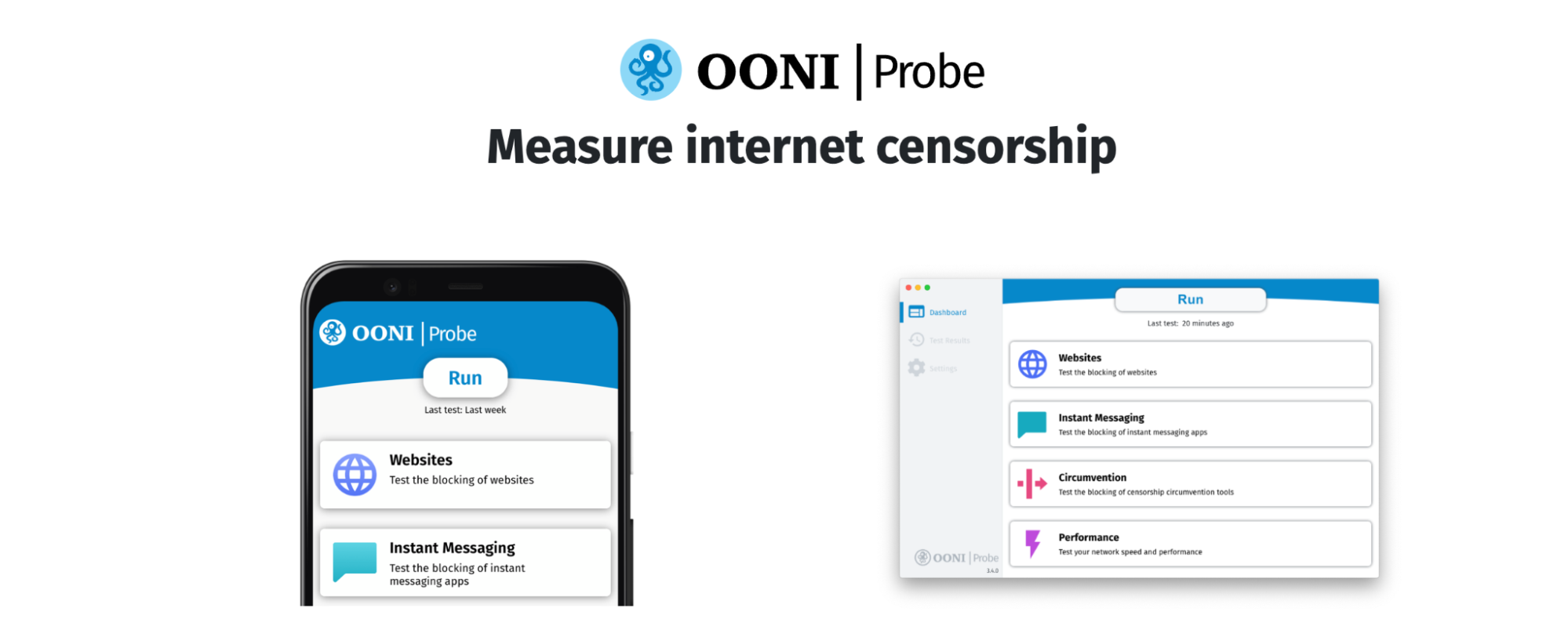 OONI Probe is a free and open source tool that we have built since 2012, designed to measure various forms of internet censorship. To enable communities worldwide to run OONI Probe and contribute measurements (which are published as open data on OONI Explorer in real-time), we have made OONI Probe available for both mobile and desktop platforms. Specifically, OONI Probe is available for Android, F-Droid, iOS, Windows, macOS, and Linux.